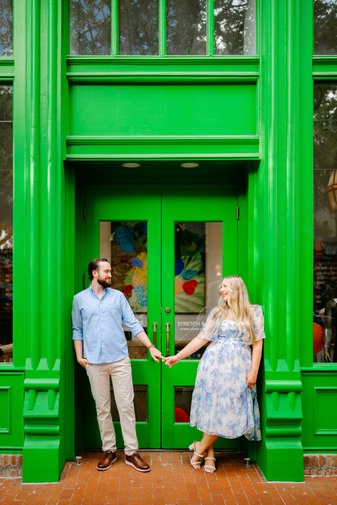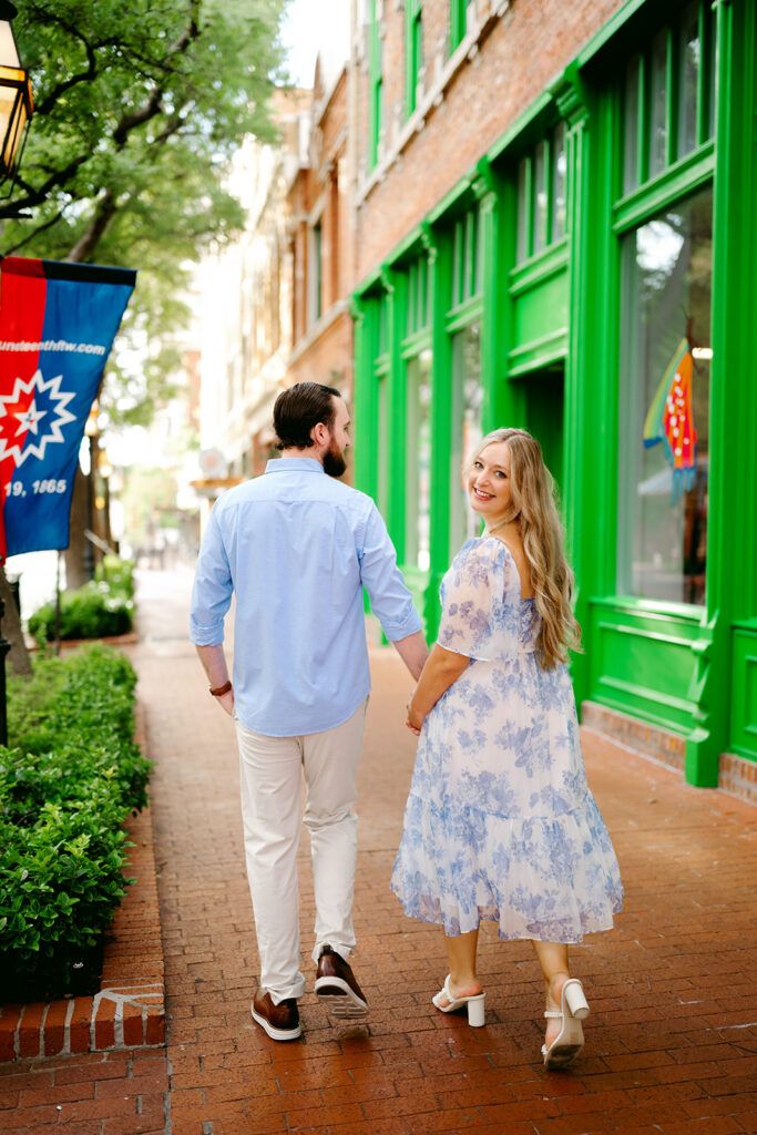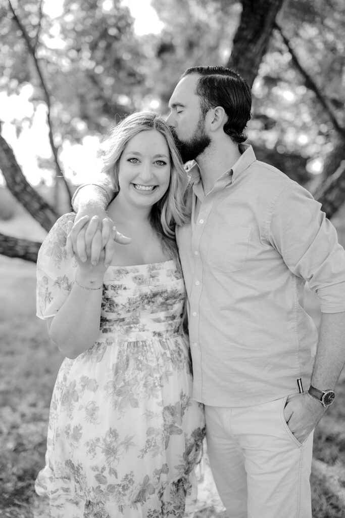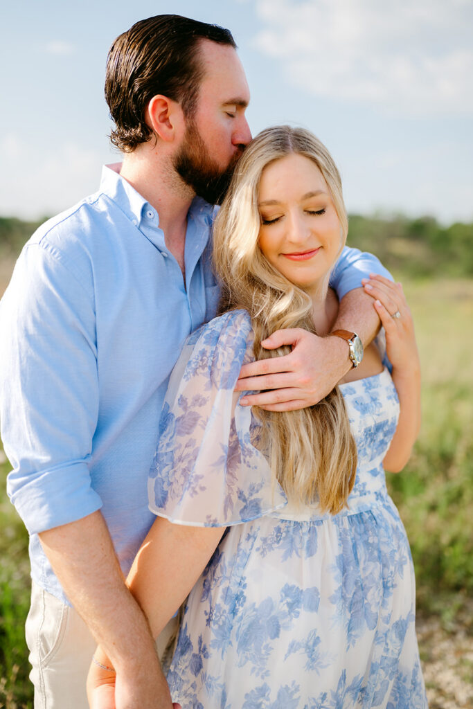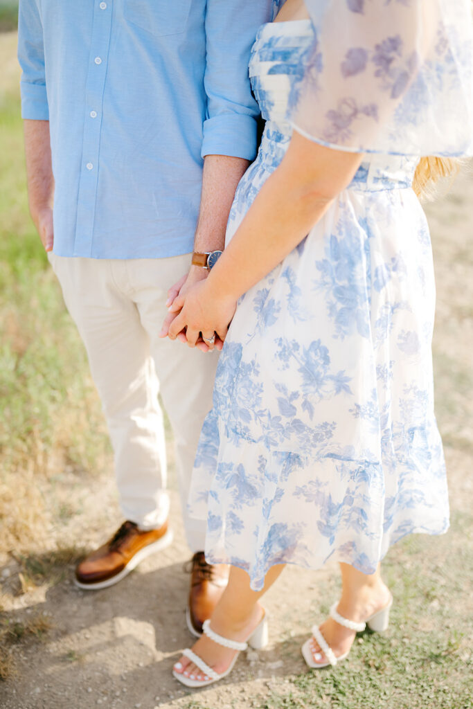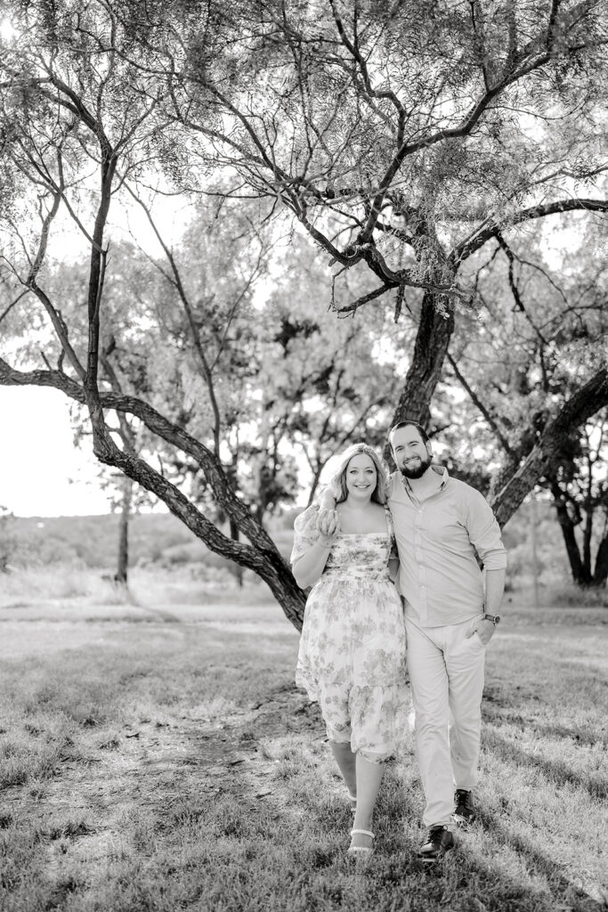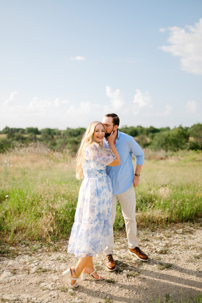 The most important rule for outfit prep for your engagement session outfits is simple: stay true to yourselves. Outfits that are neutral, soft-colored, and timeless photograph beautifully, especially in College Station’s natural outdoor spaces. Think creamy whites, muted blues, soft greens, or subtle patterns. You want to feel like your best, most confident selves. When you feel good, it shows in your photos.