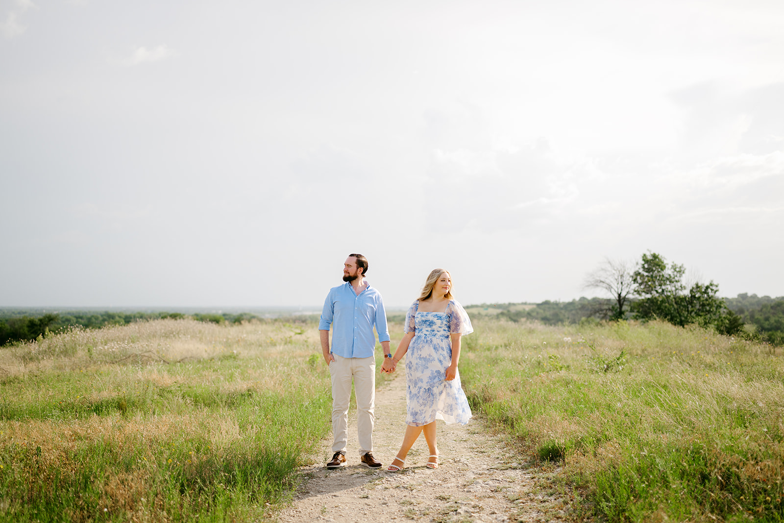 Light is everything in photography, so I typically schedule engagement sessions near sunset to capture that soft, glowy golden-hour light. We’ll work together so that you can plan your hair, makeup, and travel time accordingly. Summer sessions in College Station can get warm, so starting later in the evening helps you stay comfortable while still capturing that dreamy light.
