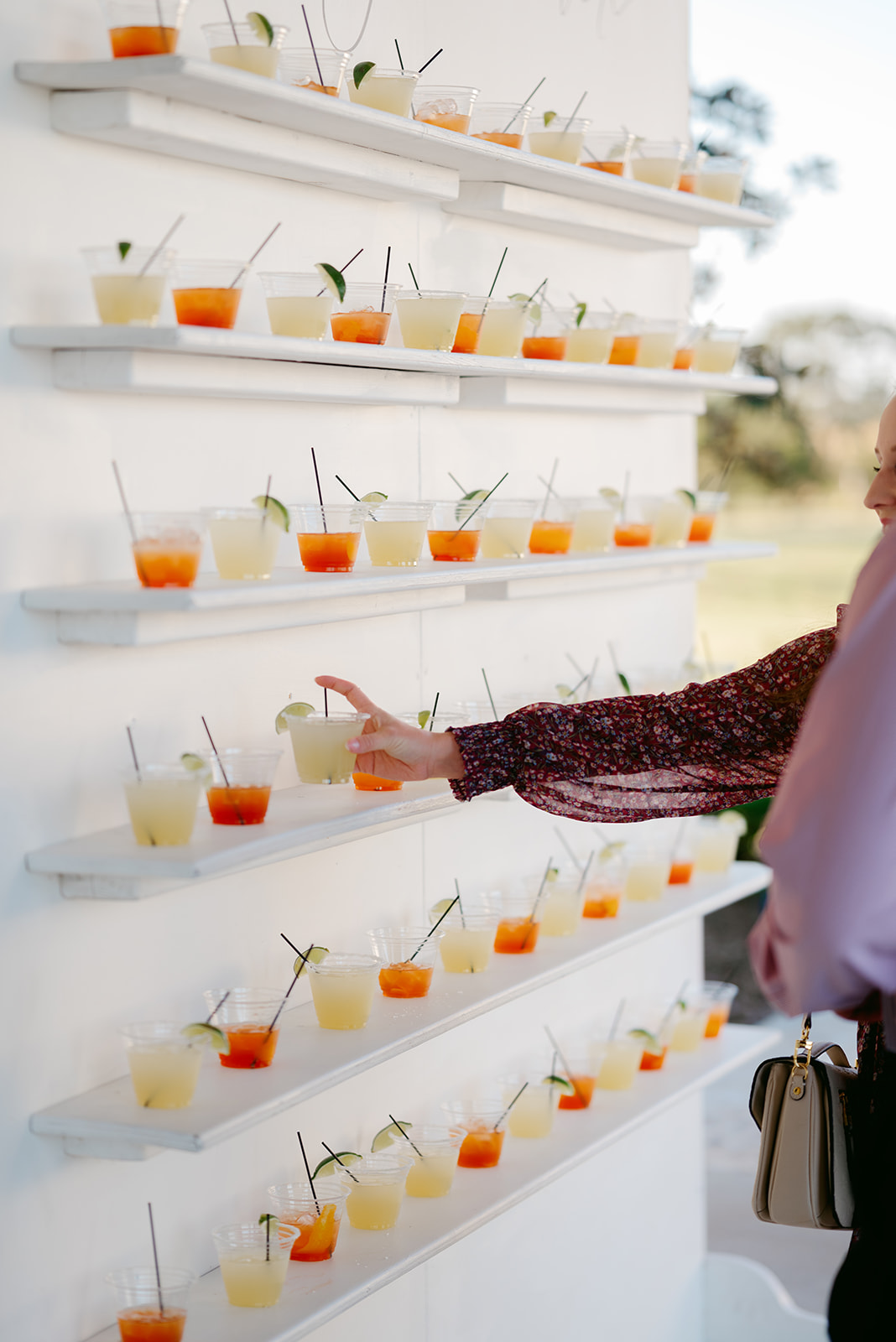 One of the most fun elements was the drink wall at the entrance to cocktail hour. It welcomed guests in such a creative way. From there, everyone gathered outdoors and celebrated together.