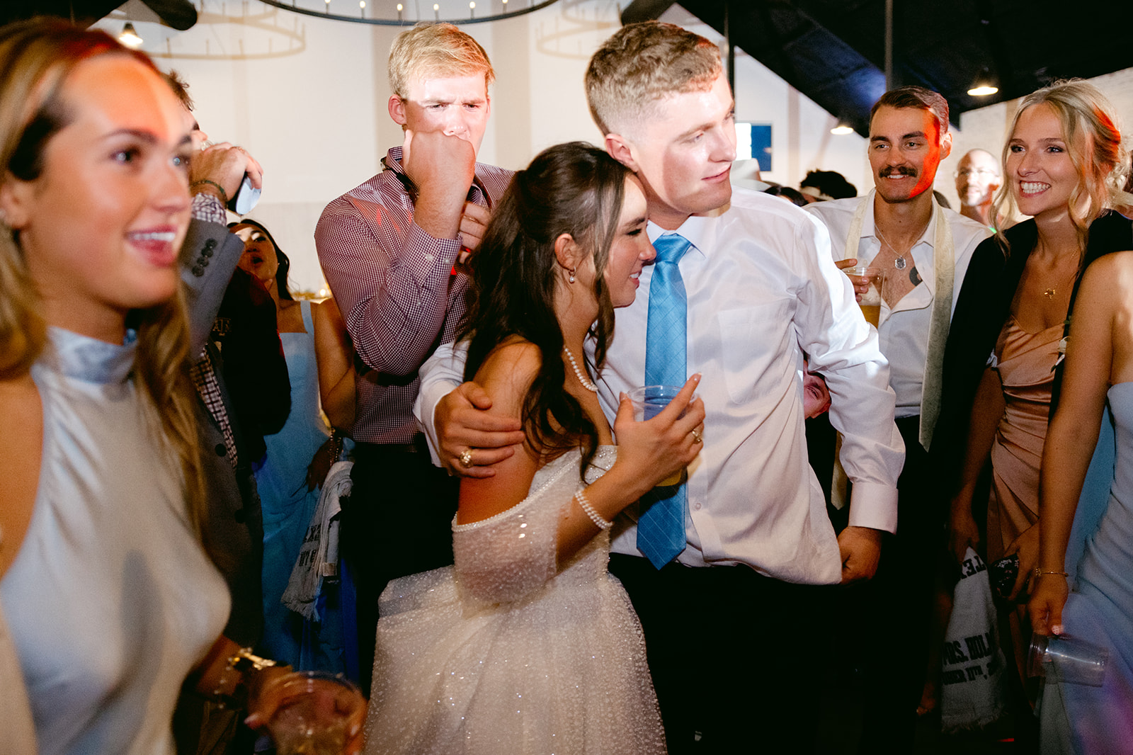 As the evening continued, the dance floor quickly filled. Their amazing DJ kept the energy high, and light-up foam sticks made the party even more fun. To end the night, Kiera and Mac shared one final private dance together. Their guests lined up with the Aggie Towels for a joyful sendoff, closing out their Camp Hosea wedding in the most memorable way.